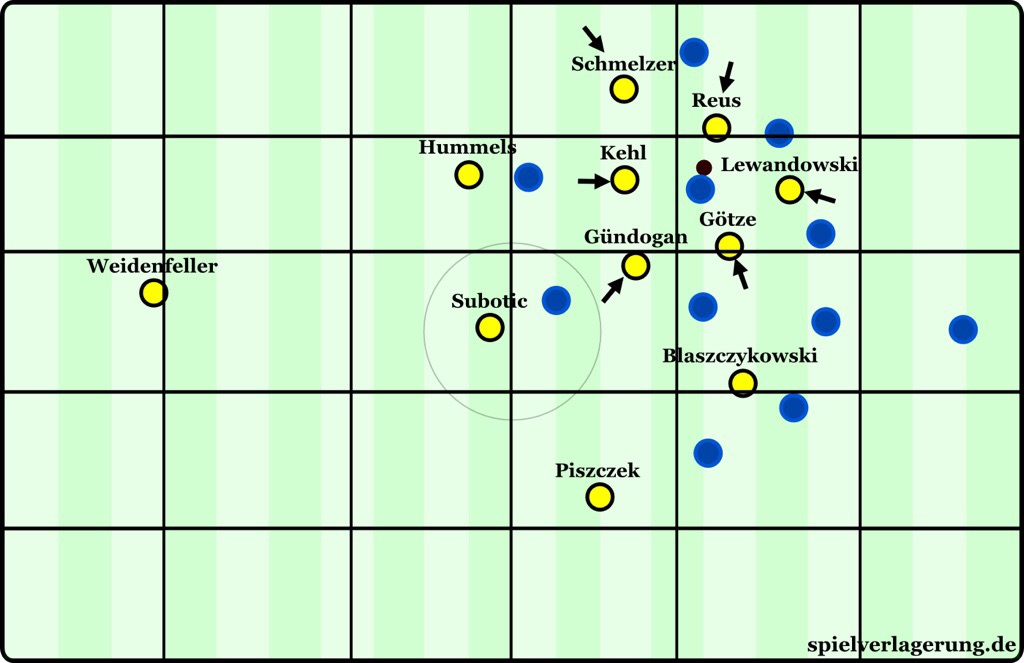 “Is Gegenpressing or counter pressing in sort pressing the opposition high up the pitch and give them little time to adjust to their game tempo and give your team more opportunities at goal, combine that with a super fit team and your on to a winner here is a little picture”
